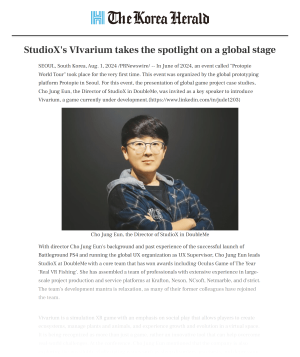 SEOUL, South Korea, Aug. 1, 2024 /PRNewswire/ -- In June of 2024, an event called "Protopie World Tour" took place for the very first time. This event was organized by the global prototyping platform Protopie in Seoul. For this event, the presentation of global game project case studies, Cho Jung Eun, the Director of StudioX in DoubleMe, was invited... Continue Reading →